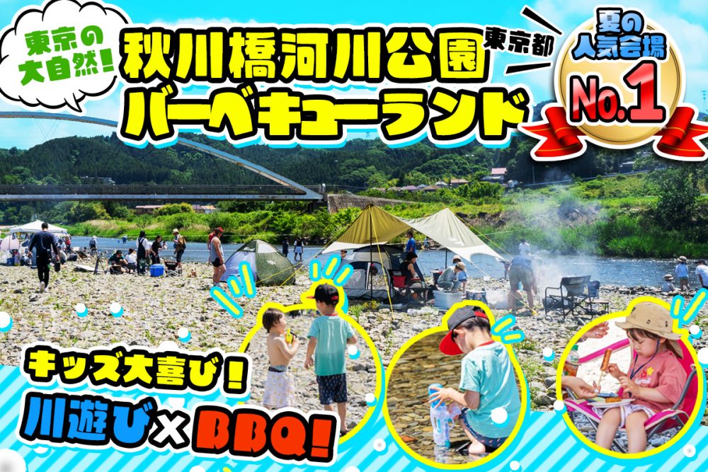 【武蔵五日市駅徒歩5分】東京都あきる野市<秋川橋河川公園バーベキューランド>で川遊びしよう!西東京から約30分◎持込&手ぶら自由